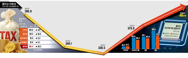 세무 전문가들은 최근 증권거래세·법인세·소득세 증가 흐름을 고려하면 올해 국세수입이 435조원을 웃돌 것으로 전망했다. 전쟁이 장기화할 경우 정부가 2차 추경 카드를 꺼낼 가능성도 제기되고 있다.