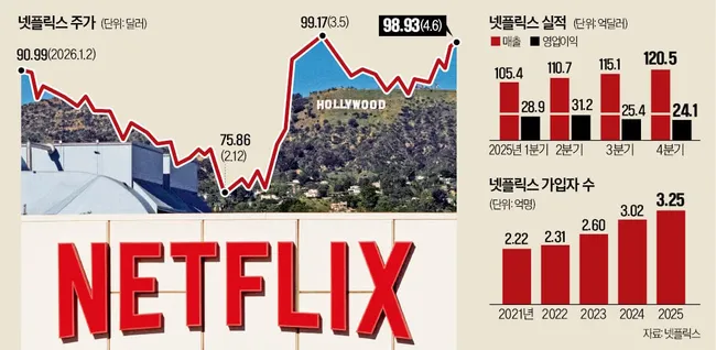 워너브러더스 인수 포기로 시장의 우려가 해소되면서 골드만삭스 등 월가는 목표주가를 상향 조정했다. 넷플릭스는 향후 4년간 두 자릿수 성장을 유지할 것으로 전망된다.