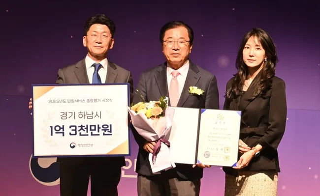 하남시가 '2025년 민원서비스 종합평가'에서 시 단위 기초지자체 전국 1위를 차지하며 5년 연속 최우수 기관으로 선정됐다. 행정안전부와 국민권익위원회 공동 평가에서 전국 상위 10%에만 부여되는 '가' 등급을 획득했다.
