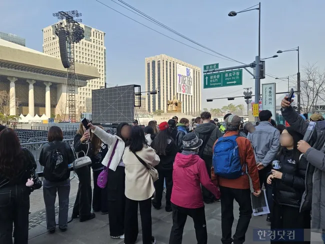 21일 오후 8시 광화문 광장에서 열리는 BTS 컴백 공연을 앞두고 전 세계 팬들이 새벽부터 자리를 잡기 위해 몰려들었다. 베트남, 필리핀, 독일, 스페인, 스웨덴, 미국, 우크라이나 등 해외 팬들은 티켓 없이도 무대를 볼 수 있는 명당을 확보하기 위해 밤샘 대기, 식량 준비, 보조배터리 충전 등 철저한 준비를 했다.