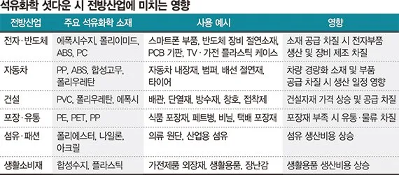 호르무즈 봉쇄로 석화·전자 동시 타격