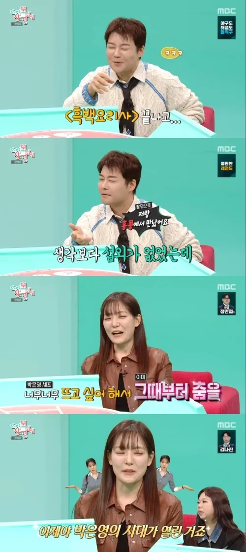 전현무는 박은영이 춤을 추게 된 배경을 설명하며 드라마 '흑백' 종영 후 섭외가 줄어들자 의도적으로 춤을 시작했다고 폭로했다. 박은영은 이를 인정하며 그때부터 춤을 계속해오고 있다고 했다.