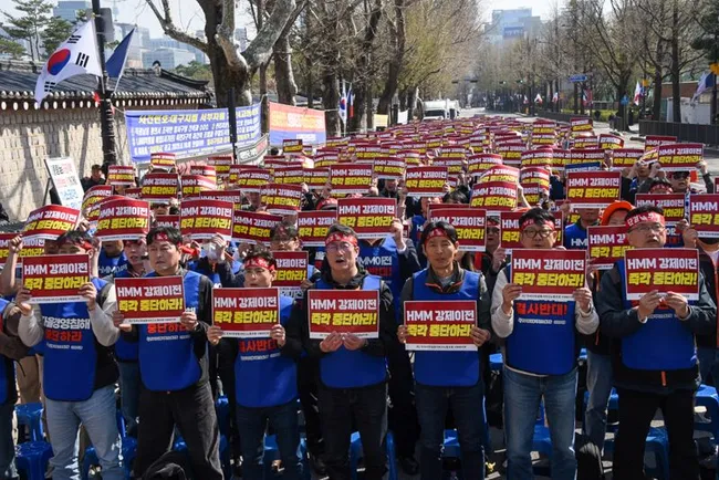 HMM 육상노동조합은 2일 부산 본사 이전 추진에 강하게 반발하며 총파업을 시사했다. 노조는 노사 교섭 중 사측이 기습적으로 이사회를 열어 정관 변경을 의결한 것을 '배신 행위'라고 비판하고, 경영상 실익 없이 정부 압력과 정치적 이해관계에 편승한 결정이라고 지적했다.