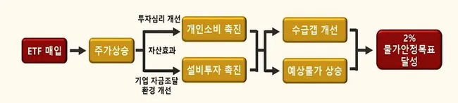일본은행은 2003년 시장의 요구를 초기에 거절했으나, 2008년 글로벌 금융위기 이후 2010년부터 ETF 매입을 시작했다. 2013년 양적·질적 금융완화(QQE) 정책 도입으로 매입을 가속화했으며, 지난해 3월 기준금리 인상과 함께 매입을 중단했다.