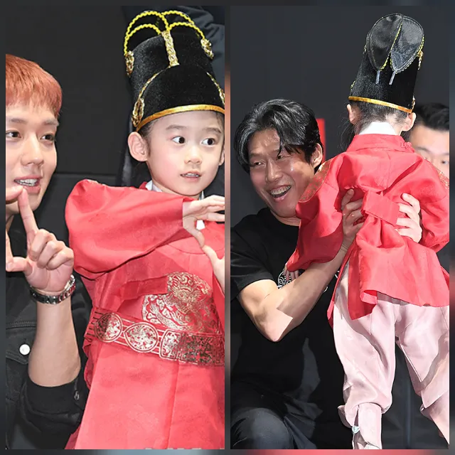 17일 메가박스 코엑스 무대인사에서 단종 복장을 한 어린이 팬이 등장해 박지훈·유해진과 함께했다. 극 중 캐릭터가 어린 관객층까지 확산되는 '키즈 신드롬' 현상이 포착됐다.