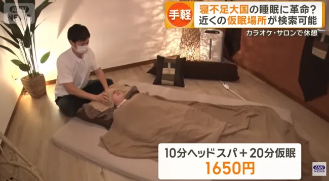 일본에서 유료 낮잠 서비스가 새로운 소비 트렌드로 자리 잡고 있다. 도쿄 시부야의 마사지 전문점은 헤드 스파와 20분 낮잠을 묶은 상품을 1650엔에 판매하고 있으며, 노래방도 60분 704엔의 저가 낮잠 서비스를 출시했다.