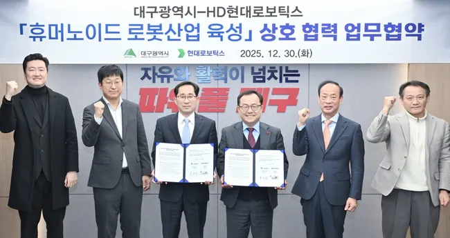 대구광역시는 30일 국내 로봇 시장 점유율 1위 기업인 HD현대로보틱스와 휴머노이드 로봇 산업 육성을 위한 업무협약을 체결했다.