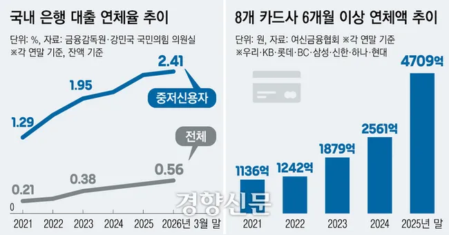“빚갚을 여력 없어요” 밑바닥서 위험신호 울린다···카드론 넘어 은행 연체율도 올라