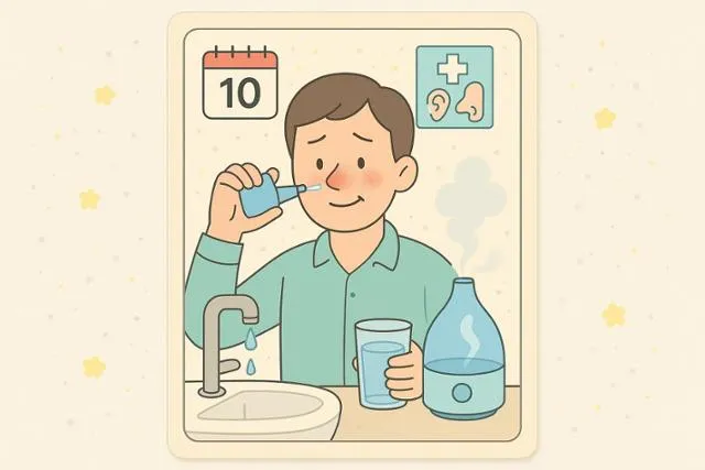 얼굴이 욱신거리고 머리가 아프면 늦지 않게 이비인후과에서 진료를 받아야 한다. 외출 후 손 씻기와 함께 생리 식염수로 코를 조심히 씻어주는 것이 도움이 된다.