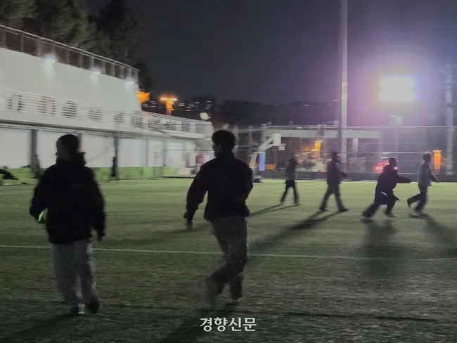 지난 25일 서울 성균관대 운동장에서 청년 30명이 모여 '경찰과 도둑'(경도) 놀이를 즐겼다. 당근 앱을 통해 모인 낯선 청년들은 동물 머리띠를 쓰고 술래잡기를 하며 웃음과 비명으로 밤을 지새웠다.