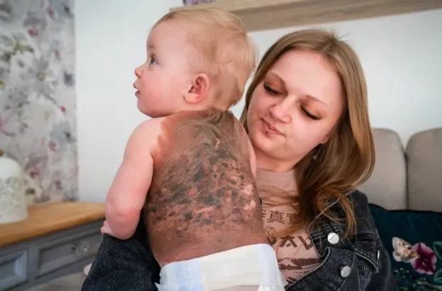 영국 신생아, 선천성 거대 멜라닌 세포 모반으로 태어나