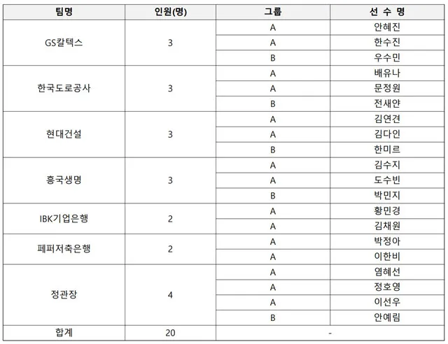 프로배구 여자부 FA 20명 공시…국대 미들블로커 정호영 최대어