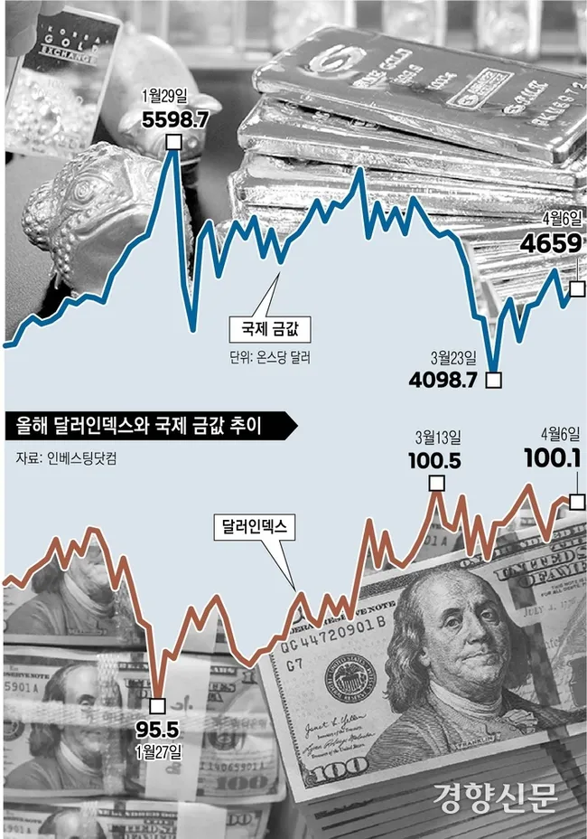 다만 금의 본질적 가치가 훼손된 것은 아니며, 중동 전쟁 장기화 전망에 따라 안전자산 선호 심리가 회복되고 있다. 금 가격은 4600달러선으로 반등했고, 전문가들은 향후 달러 및 금리 향방에 따라 금의 반등 여지가 있다고 평가했다.