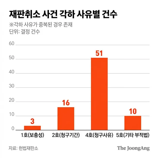 헌법재판소가 지난달 31일까지 사전심사에서 74건의 재판소원을 각하하며 심판 범위를 빠르게 좁혀가고 있다. 법조계는 대법원의 '심리불속행 기각'이 첫 인용 사건의 출발점이 될 수 있다고 관측하고 있으며, 민사·가사·행정 사건 중 71%가 심리불속행 기각으로 확정되는 점을 주목하고 있다.