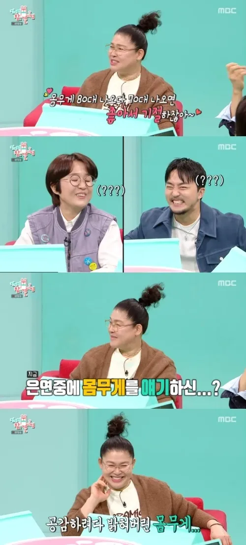 송은이가 '은연중에 몸무게를 얘기한 거냐'고 지적하자 이영자는 '왔다 갔다 했다'고 솔직하게 인정했으며, 패널들은 눈치 보며 웃음으로 반응했다.