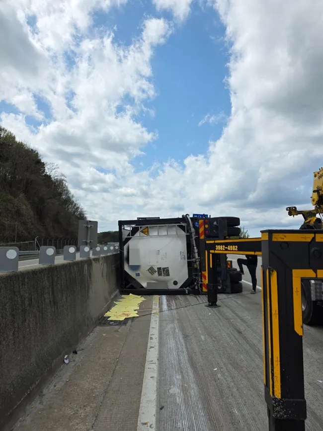 광주-대구 고속도로서 탱크로리 전복돼 화학물질 소량 유출···1명 부상