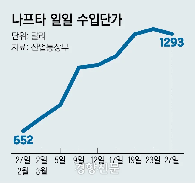 정부 나프타 추경 4700억원, 가격 급등으로 재설계 촉구