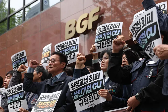씨유 배송노동자들은 2022년 노조를 결성해 4년간 노동조건 개선을 요청했으나 원청은 번번이 거부했고, 올해 1월부터 일곱차례 교섭 요구서를 보낸 후 5일부터 파업에 돌입했다. 민주노총은 정부와 비지에프리테일에 책임을 묻고 화물노동자의 교섭 요구 관철을 위해 총력 투쟁에 나서겠다고 밝혔다.