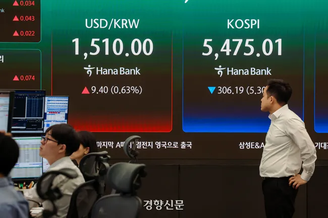 [속보]중동 정세 악화에 코스피 6% 급락, 원·달러 환율 1510원 넘겨