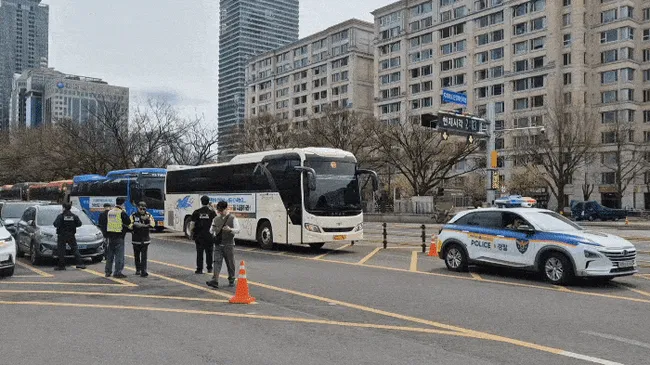 민주노총 서비스연맹 전세버스연대지부는 31일 중동 전쟁으로 인한 유가 급등에 따른 유가보조금 지급을 촉구하며 청와대까지 차량 행진을 벌였다.