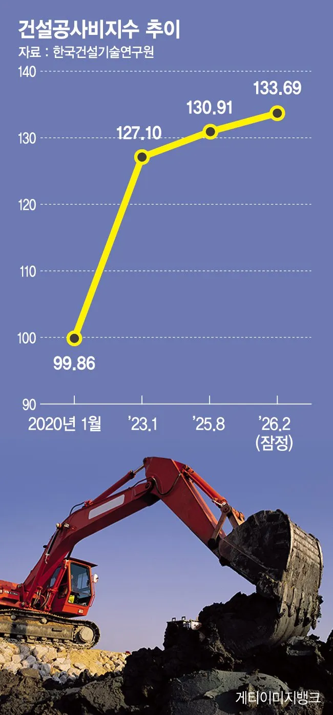 미국·이란전쟁 장기화로 건설사들이 자재비 인상 공문을 받으면서 2020~2023년 러시아·우크라이나전쟁 당시의 공사비 급증 사태가 재현될 수 있다는 우려가 나왔다. 건설공사비지수는 2025년 8월 이후 6개월 연속 상승해 2월 기준 133.69로 2020년 대비 33% 이상 올랐으며, 자재 재고가 한달여만 남은 건설사도 있는 것으로 파악됐다.