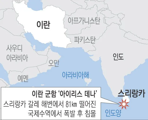 미국 잠수함이 인도양 공해상에서 이란 군함 '아이리스 데나'호를 어뢰로 격침했다. 승조원 180명 중 87명이 사망하고 구조됐다. 제2차 세계대전 종전 이후 81년 만에 미 해군 잠수함이 어뢰로 적함을 격침한 첫 사례다.