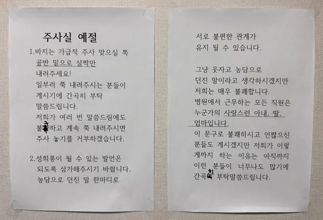 “바지는 제발 살짝만”…병원 주사실에 붙은 안내문, 무슨일