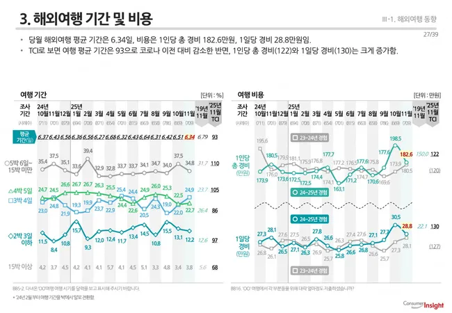 내국인은 '덜 가도 더 쓰는' 고지출 여행 방식으로 전환하며 해외여행을 보상 소비로 인식하는 반면, 국내여행은 물가 상승 속 절약 대상으로 위축되고 있다. 내년에는 동남아 수요가 동북아로 대체 이동하고 중국 여행 수요가 증가할 것으로 예상된다.