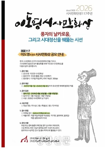 한국 시사만화 탄생 117주년 ‘이도영 시사만화상’ 공모