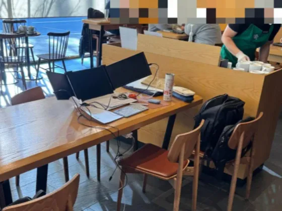 노트북에 모니터 2대…혼자 네자리 차지한 '스벅 민폐족' 논란
