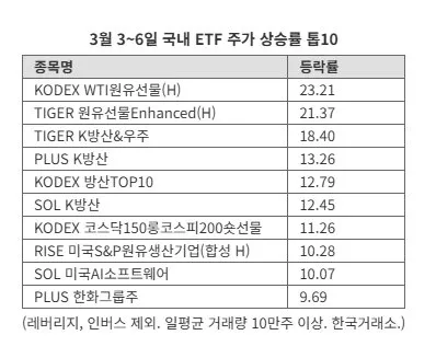 중동 긴장으로 원유·방산 ETF 급등, 자동차·반도체 ETF 급락