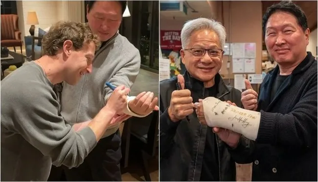 "얼른 회복하길"... 최태원 깁스에 젠슨 황·저커버그 응원 메시지 '깜짝'