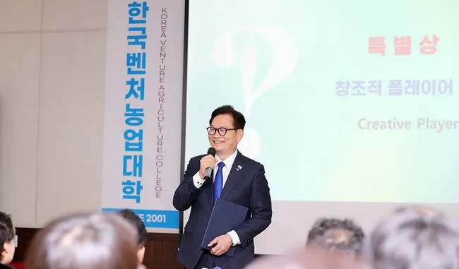 송영길 전 민주당 대표가 2017년 입학한 한국벤처농업대학을 14일 졸업하며 '창조적 플레이어상'을 수상했다. 정치인이 벤처농업대를 졸업한 것은 처음이며, 그는 의정 활동으로 중단했던 학업을 올해 다시 재개해 출석 기준을 채웠다.