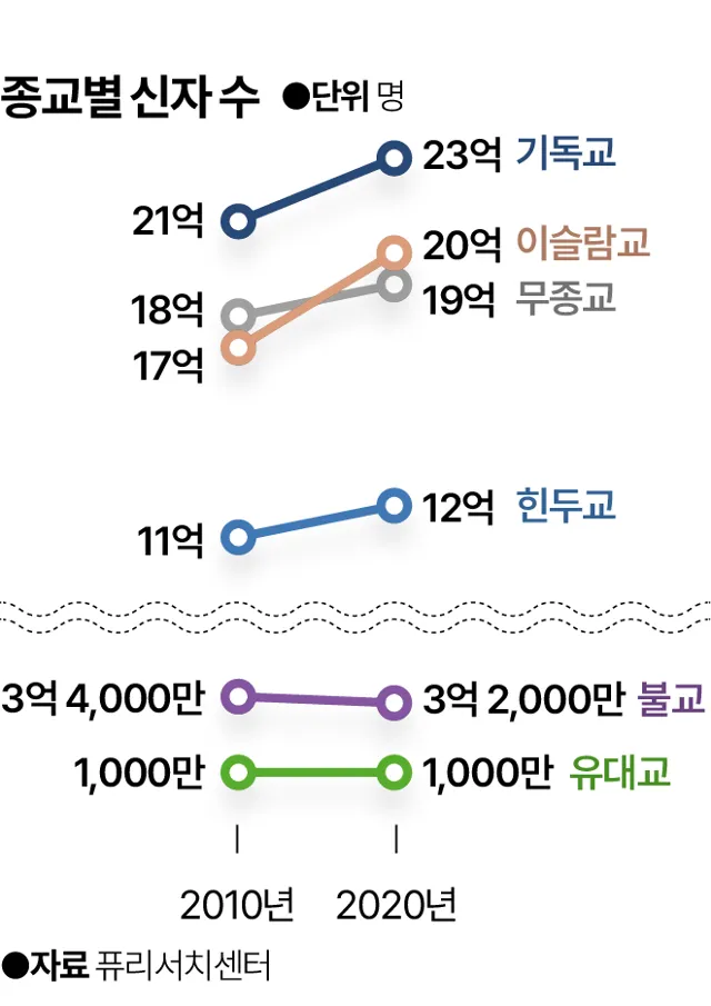 동아시아 저출산으로 불교 신자 감소, 기독교·이슬람교는 증가