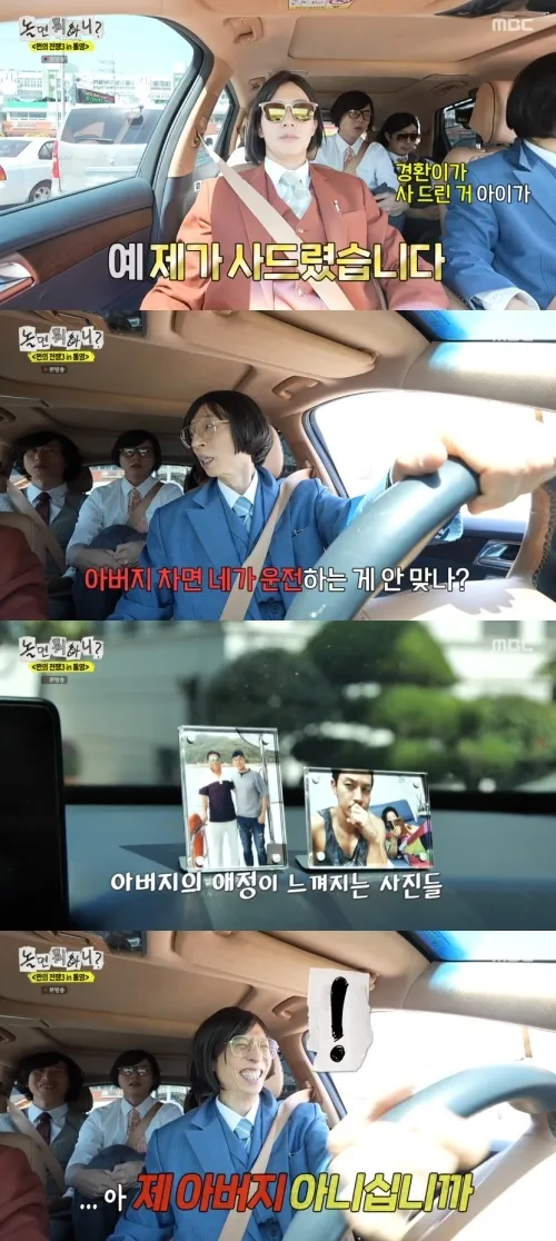 허경환이 아버지에게 선물한 고급 승용차를 타고 통영을 돌아다닌 멤버들은 차 안의 허경환 사진을 보며 아버지의 아들에 대한 애정을 느꼈다. 유재석이 운전대를 잡으며 자연스럽게 주도권을 가져갔고, 허경환이 '제 아버지 아니시냐'고 물어 웃음을 자아냈다.