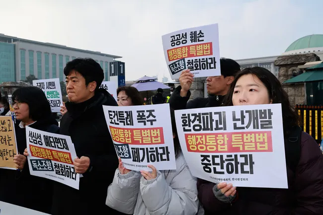 행정통합특별법 추진 과정에서 지방선거 일정에 맞춘 졸속 추진, 환경규제 완화 우려가 제기되고 있다. 특례 중심 입법으로 기존 환경 규제와 국토 관리 체계가 예외적으로 완화될 경우 헌법 제35조의 환경권 보장과 국가의 환경 보호 의무가 약화될 수 있다.