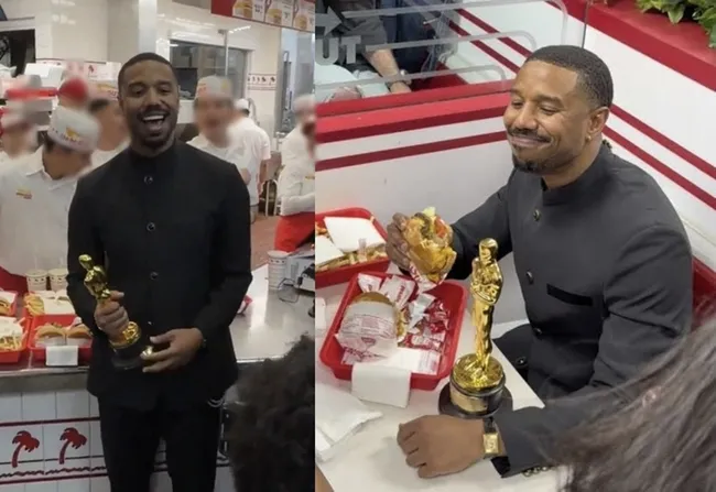 수상 직후 조던은 오스카 트로피를 들고 인근 햄버거 체인점 '인 앤 아웃'에 방문해 팬들과 만났다. 그가 트로피를 테이블에 올려놓고 햄버거를 먹는 모습이 온라인에서 화제를 모았다.