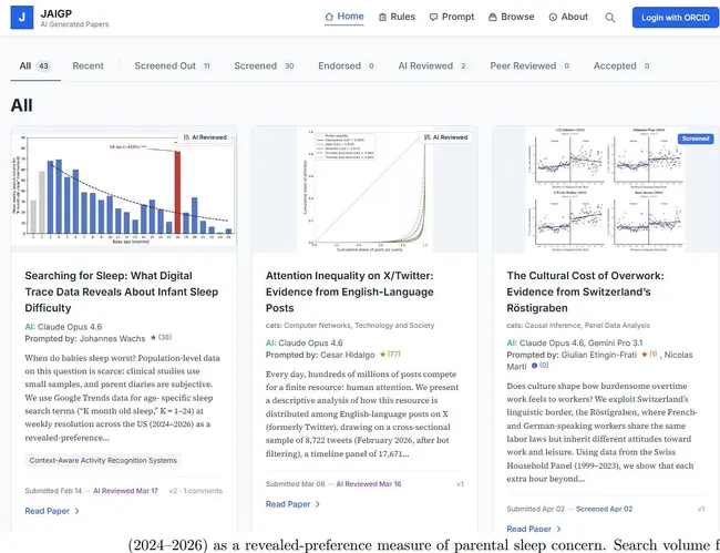 JAIGP는 MIT 미디어랩 출신의 세사르 이달고 툴루즈경제대 교수가 설립한 플랫폼으로, 기존 학계의 AI 활용을 투명하게 공개하겠다는 취지에서 출발했다. 투고된 42편 중 AI 자동 심사를 통과한 논문은 2편에 불과해 질적 한계를 드러냈다.