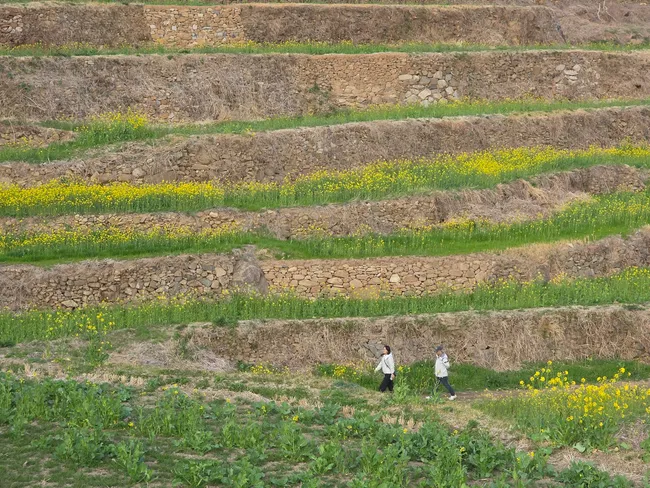 경남 남해의 가천 다랭이마을은 응봉산과 설흔산을 배경으로 108층 680여 개의 곡선형 다랑논이 펼쳐진 4월 여행지다. 마을 뒷산인 응봉산(471.5m)에서는 진달래가 흐드러지고, 설흔산(481.7m)에서는 얼레지 군락이 지천이다.