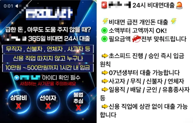 불법 대부업자들은 '24시간 대출 가능', '신용불량자도 가능' 등의 문구로 금융 취약계층을 유인한 뒤 7~10일의 짧은 상환기한에 시간당 50%를 넘는 살인적 이자를 부과했다. 피해자들은 이자를 막기 위해 추가 대출을 반복하게 되고, 상환 불능 시 가족과 지인에 대한 협박까지 당했다.