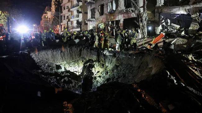 이란의 미사일 공격으로 텔아비브 일대에서 화염이 발생했으며, 이스라엘 구조대원들이 미사일 낙하 지점을 조사하는 등 피해 상황을 파악 중이다. 양국 간 군사적 긴장이 고조되고 있는 상황이다.