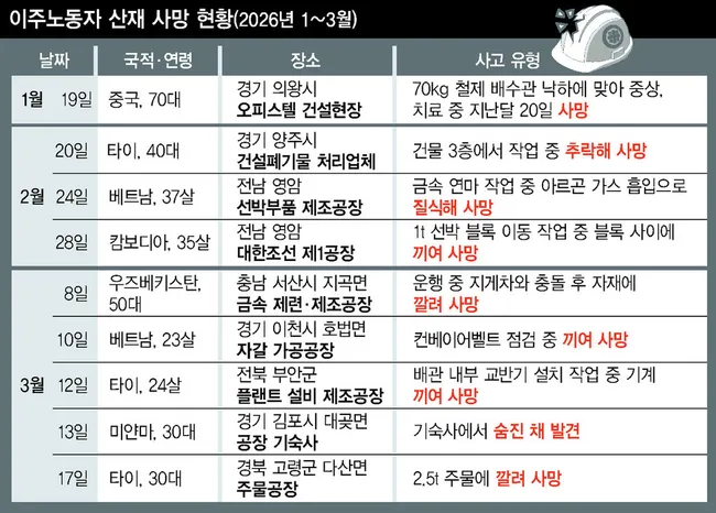 이주노동자 산재 사망 발생률이 한국인보다 3배 높은 만큼, 사업장 변경 자유화와 안전 대책 강화가 시급한 상황이다.