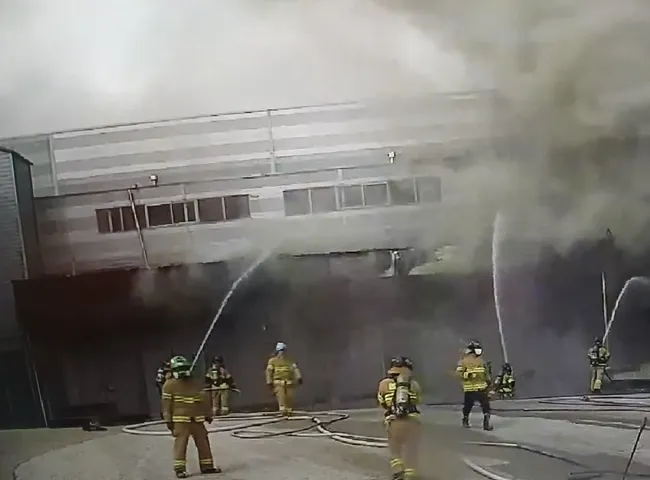 완도 수산물 냉동창고 화재…건물에 고립된 소방관 2명 사망