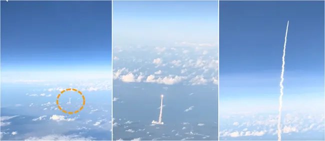 지난 2일 틱톡·인스타그램 등에 올라온 영상들은 로켓이 지상에서 버섯 형태의 연기를 뿜으며 상승하고 구름을 뚫고 경로를 따라 연기를 남기는 모습을 담았다. 촬영자는 "3만 8000피트에서 역사를 목격했다"며 "유나이티드 에어라인이 마법을 부렸다"고 표현했다.