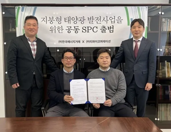 한국에너지거래와 티와이코퍼레이션이 지붕형 태양광 발전사업 공동 추진 협약을 체결하고 지난 4일 발전사업 법인 국민솔라 지붕형을 설립했다.
