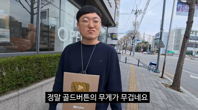 유튜버 김선태가 구독자 162만 명 달성으로 받은 골드버튼을 목에 걸고 거리 홍보에 나섰다. 100만 구독자 달성 기념으로 시민들에게 직접 보여주며 셀프 홍보를 진행했다.