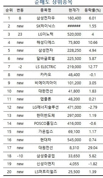 반면 삼성전자우와 SK하이닉스는 순매도 1, 2위 종목으로 올랐다. SK하이닉스는 1분기 매출과 영업이익이 각각 52조5763억원, 37조6103억원으로 작년 동기 대비 198%, 405% 증가했으며 분기 최대 기록을 달성했다. 투자 고수들은 반도체 업황이 실적으로 증명된 상황에서 차익을 실현하기 위해 매도에 나선 것으로 분석된다.