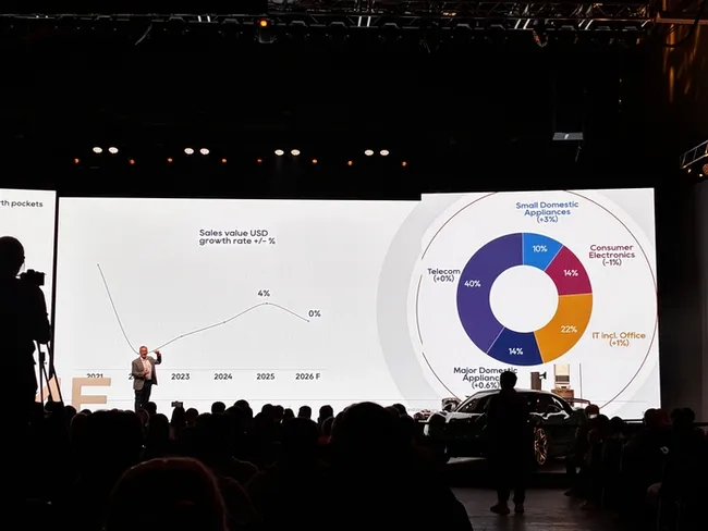 제임스 테크&내구재 글로벌 총괄은 2024년 2%, 2025년 4%였던 성장률이 올해 0%로 떨어질 것으로 내다봤다. 소비자가 가격보다 기능과 AI를 중심으로 제품을 선택하는 패턴으로 변화하고 있으며, 소형 가전의 47%가 AI 기능을 인지·활용 중이라고 밝혔다.