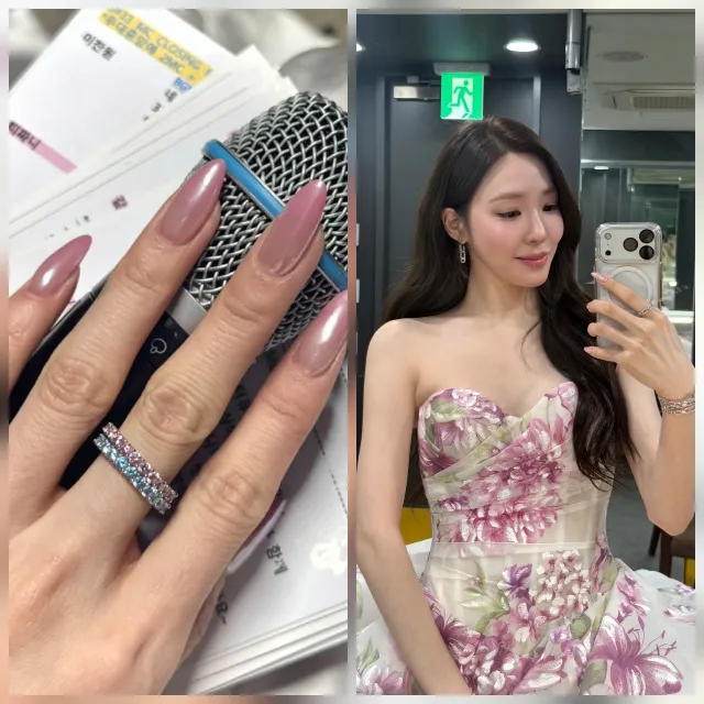 티파니 영은 화려한 플로럴 드레스를 입은 모습부터 마이크를 쥔 클로즈업 컷까지 다양한 순간을 담은 사진들을 공개했다. 특히 마이크를 잡은 손과 셀카 사진 속에서 반짝이는 반지가 또렷하게 포착되면서 일각에서는 '결혼 약속 반지'라는 반응을 보였다.